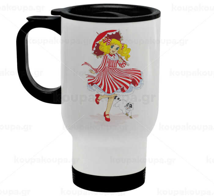 Candy, Κούπα ταξιδιού ανοξείδωτη με καπάκι, διπλού τοιχώματος (θερμό) λευκή 450ml