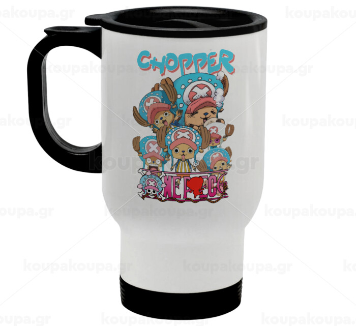 Chopper One Piece, Κούπα ταξιδιού ανοξείδωτη με καπάκι, διπλού τοιχώματος (θερμό) λευκή 450ml