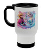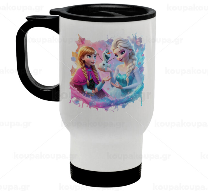 Έλσα & Άννα, Κούπα ταξιδιού ανοξείδωτη με καπάκι, διπλού τοιχώματος (θερμό) λευκή 450ml