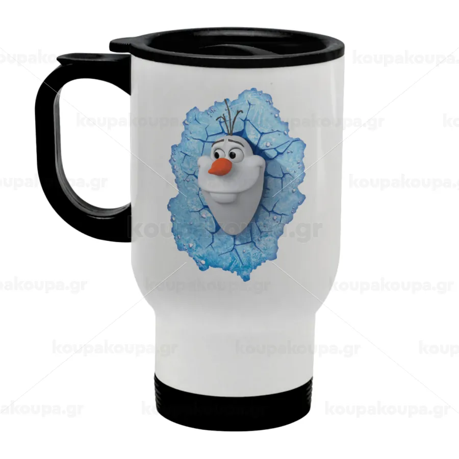 Frozen Olaf, Κούπα ταξιδιού ανοξείδωτη με καπάκι, διπλού τοιχώματος (θερμό) λευκή 450ml