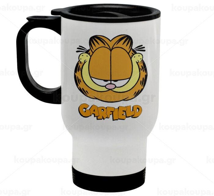 Garfield, Κούπα ταξιδιού ανοξείδωτη με καπάκι, διπλού τοιχώματος (θερμό) λευκή 450ml