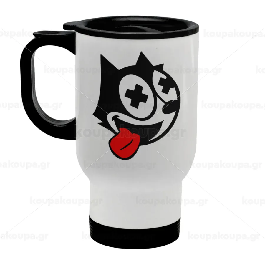 helix the cat, Κούπα ταξιδιού ανοξείδωτη με καπάκι, διπλού τοιχώματος (θερμό) λευκή 450ml