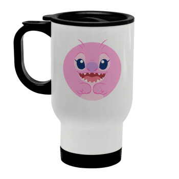 Lilo & Stitch Angel pink, Κούπα ταξιδιού ανοξείδωτη με καπάκι, διπλού τοιχώματος (θερμό) λευκή 450ml