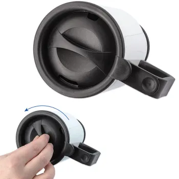 Κούπα ταξιδιού θερμό διπλού τοιχώματος από ανοξείδωτο ατσάλι συνιστάται σε όποιον θέλει να απολαύσει το τσάι ή τον καφέ του με σωστό οικολογικό αποτύπωμα, έχει λαβή για το χέρι, είναι ανθεκτική, ελαφριά, και κάθεται τέλεια στις θήκες ποτηριών του αυτοκινήτου. Το καπάκι διαθέτει λαβή περιστροφής 45° για άνοιγμα και κλείσιμο της οπής για το καλαμάκι ή της πόσης.