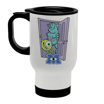 Monster inc, Κούπα ταξιδιού ανοξείδωτη με καπάκι, διπλού τοιχώματος (θερμό) λευκή 450ml