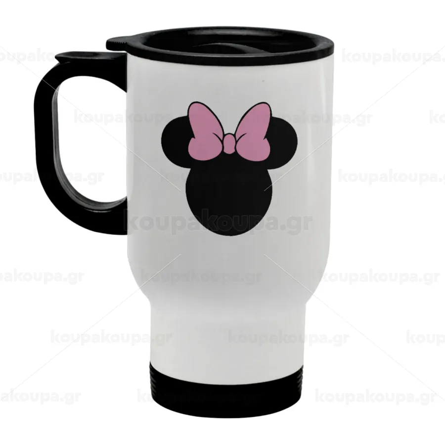 mouse girl, Κούπα ταξιδιού ανοξείδωτη με καπάκι, διπλού τοιχώματος (θερμό) λευκή 450ml