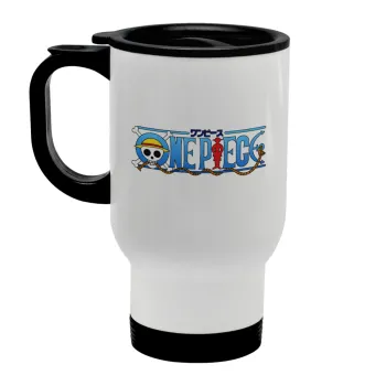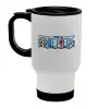 Onepiece logo, Κούπα ταξιδιού ανοξείδωτη με καπάκι, διπλού τοιχώματος (θερμό) λευκή 450ml