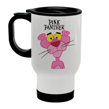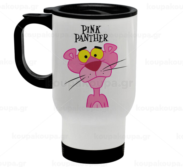 Pink Panther cartoon, Κούπα ταξιδιού ανοξείδωτη με καπάκι, διπλού τοιχώματος (θερμό) λευκή 450ml
