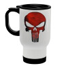 Red skull, Κούπα ταξιδιού ανοξείδωτη με καπάκι, διπλού τοιχώματος (θερμό) λευκή 450ml