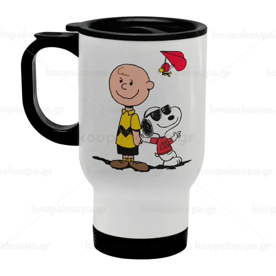 Snoopy & Joe, Κούπα ταξιδιού ανοξείδωτη με καπάκι, διπλού τοιχώματος (θερμό) λευκή 450ml