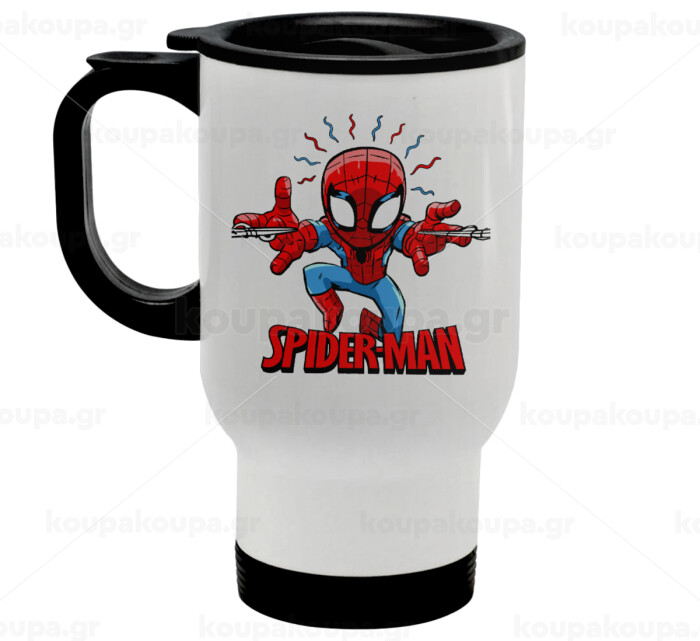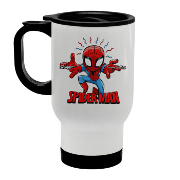 Spiderman flying, Κούπα ταξιδιού ανοξείδωτη με καπάκι, διπλού τοιχώματος (θερμό) λευκή 450ml