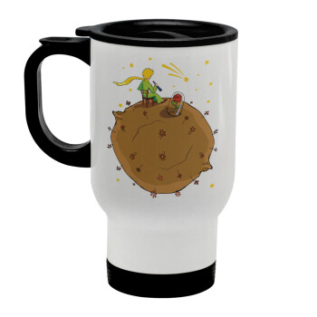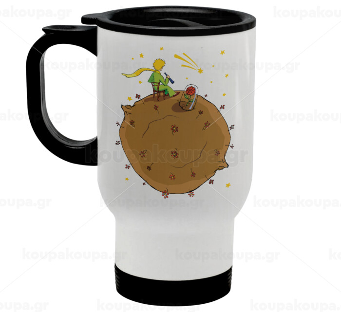 Ο μικρός πρίγκιπας planet, Κούπα ταξιδιού ανοξείδωτη με καπάκι, διπλού τοιχώματος (θερμό) λευκή 450ml