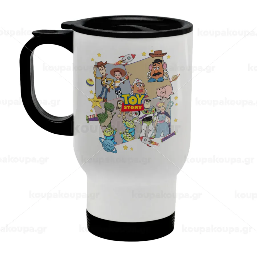 toystory characters, Κούπα ταξιδιού ανοξείδωτη με καπάκι, διπλού τοιχώματος (θερμό) λευκή 450ml