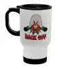 Yosemite Sam Back OFF, Κούπα ταξιδιού ανοξείδωτη με καπάκι, διπλού τοιχώματος (θερμό) λευκή 450ml
