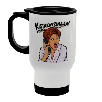 Μωρή Κατακουζίνα, Κούπα ταξιδιού ανοξείδωτη με καπάκι, διπλού τοιχώματος (θερμό) λευκή 450ml