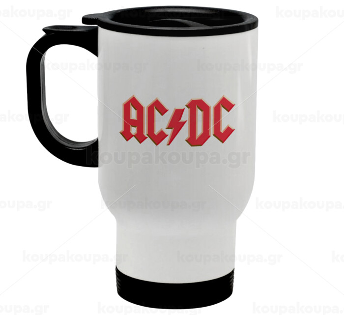 AC/DC, Κούπα ταξιδιού ανοξείδωτη με καπάκι, διπλού τοιχώματος (θερμό) λευκή 450ml