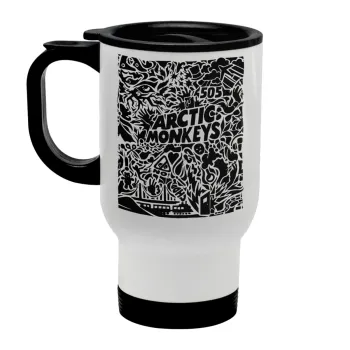 Arctic Monkeys, Κούπα ταξιδιού ανοξείδωτη με καπάκι, διπλού τοιχώματος (θερμό) λευκή 450ml