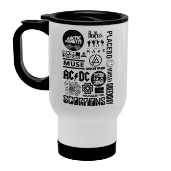 Best Rock Bands Collection, Κούπα ταξιδιού ανοξείδωτη με καπάκι, διπλού τοιχώματος (θερμό) λευκή 450ml