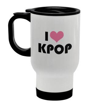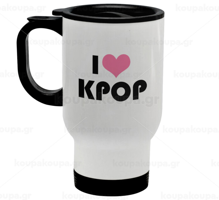 I Love KPOP, Κούπα ταξιδιού ανοξείδωτη με καπάκι, διπλού τοιχώματος (θερμό) λευκή 450ml