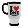 I Love, One Direction, Κούπα ταξιδιού ανοξείδωτη με καπάκι, διπλού τοιχώματος (θερμό) λευκή 450ml
