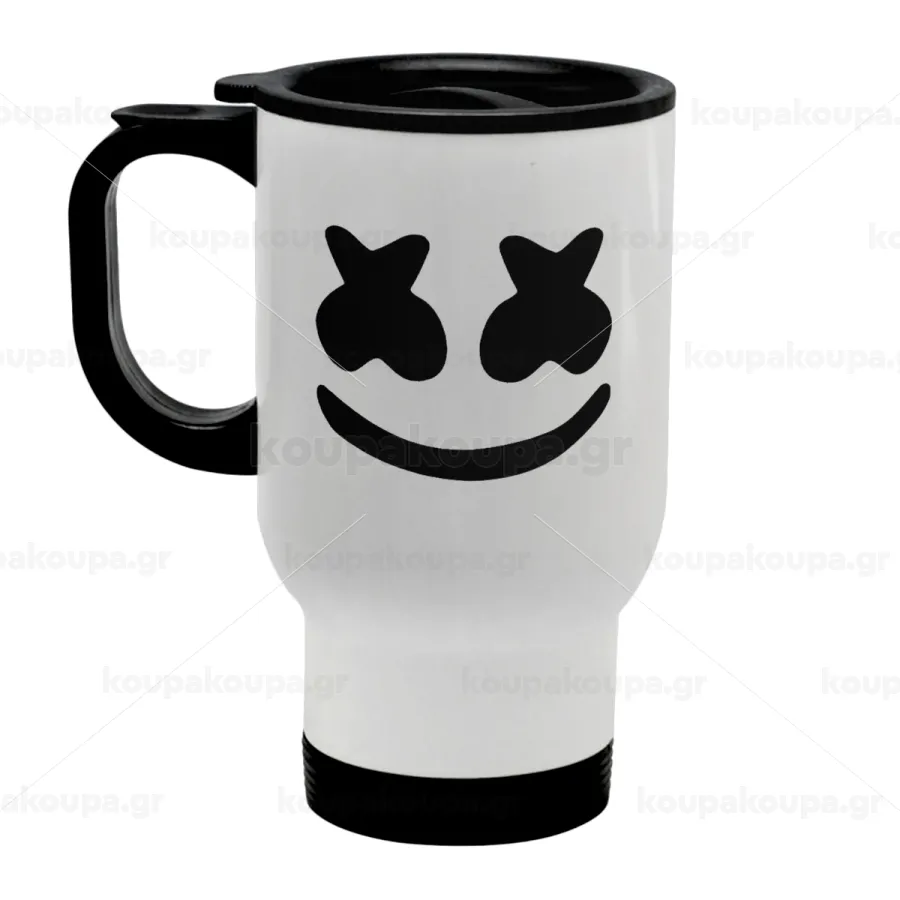 Marshmello, Κούπα ταξιδιού ανοξείδωτη με καπάκι, διπλού τοιχώματος (θερμό) λευκή 450ml