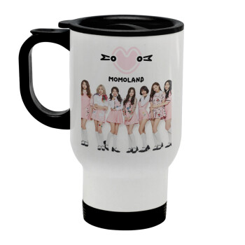 Momoland pink, Κούπα ταξιδιού ανοξείδωτη με καπάκι, διπλού τοιχώματος (θερμό) λευκή 450ml