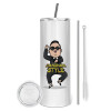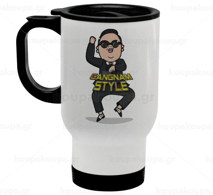PSY - GANGNAM STYLE, Κούπα ταξιδιού ανοξείδωτη με καπάκι, διπλού τοιχώματος (θερμό) λευκή 450ml