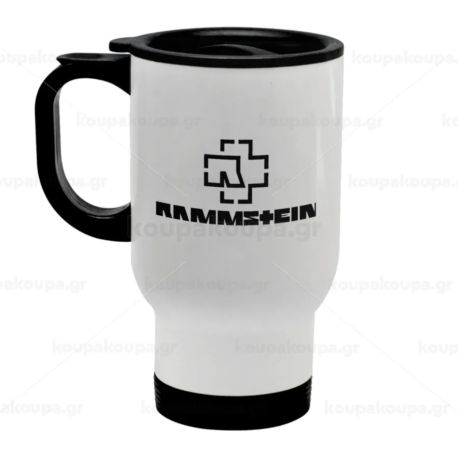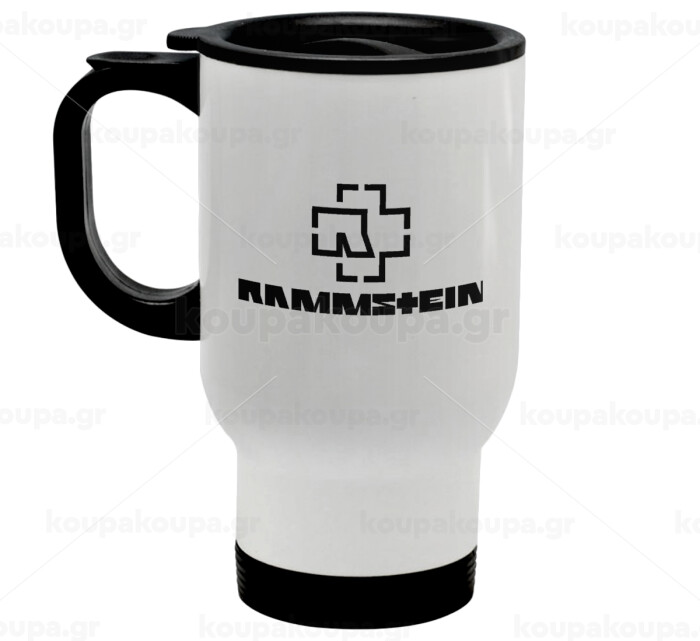 Rammstein, Κούπα ταξιδιού ανοξείδωτη με καπάκι, διπλού τοιχώματος (θερμό) λευκή 450ml
