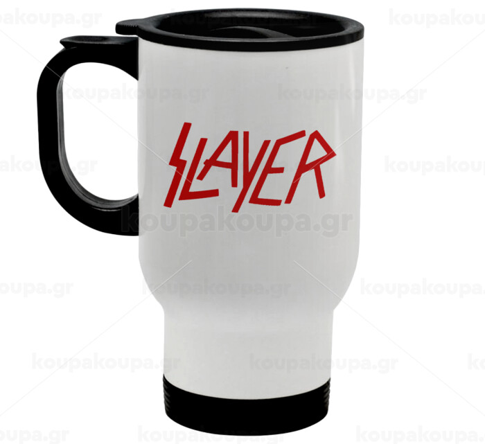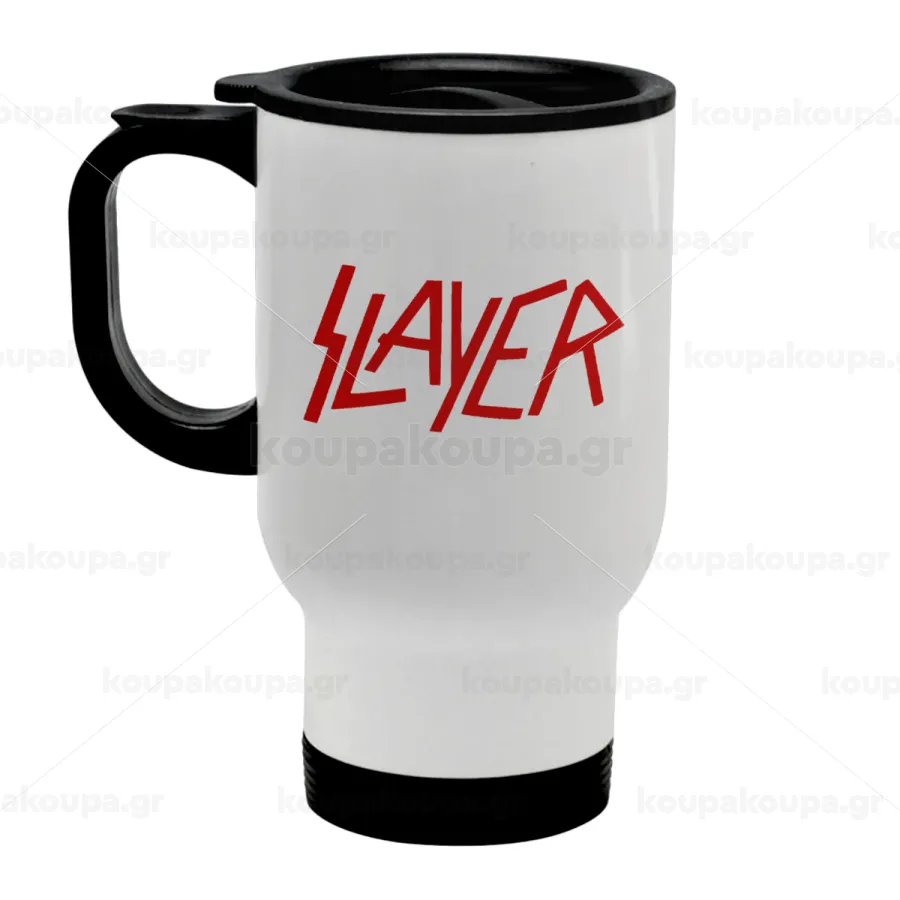 Slayer, Κούπα ταξιδιού ανοξείδωτη με καπάκι, διπλού τοιχώματος (θερμό) λευκή 450ml