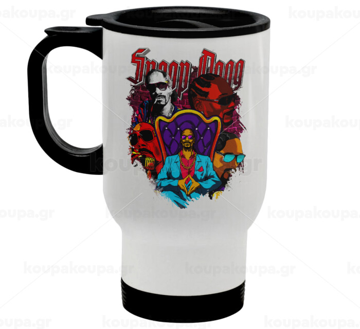 Snoop Dogg, Κούπα ταξιδιού ανοξείδωτη με καπάκι, διπλού τοιχώματος (θερμό) λευκή 450ml