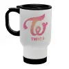 Twice, Κούπα ταξιδιού ανοξείδωτη με καπάκι, διπλού τοιχώματος (θερμό) λευκή 450ml