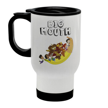Big mouth, Κούπα ταξιδιού ανοξείδωτη με καπάκι, διπλού τοιχώματος (θερμό) λευκή 450ml