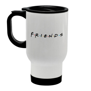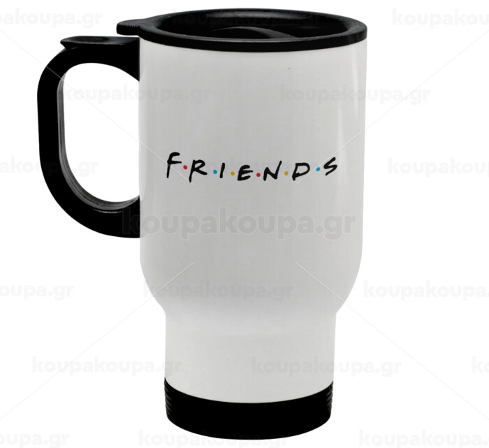 Friends, Κούπα ταξιδιού ανοξείδωτη με καπάκι, διπλού τοιχώματος (θερμό) λευκή 450ml