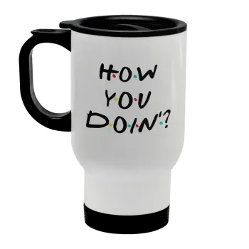 Friends How You Doin'?, Κούπα ταξιδιού ανοξείδωτη με καπάκι, διπλού τοιχώματος (θερμό) λευκή 450ml