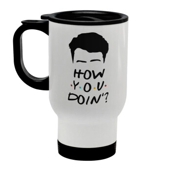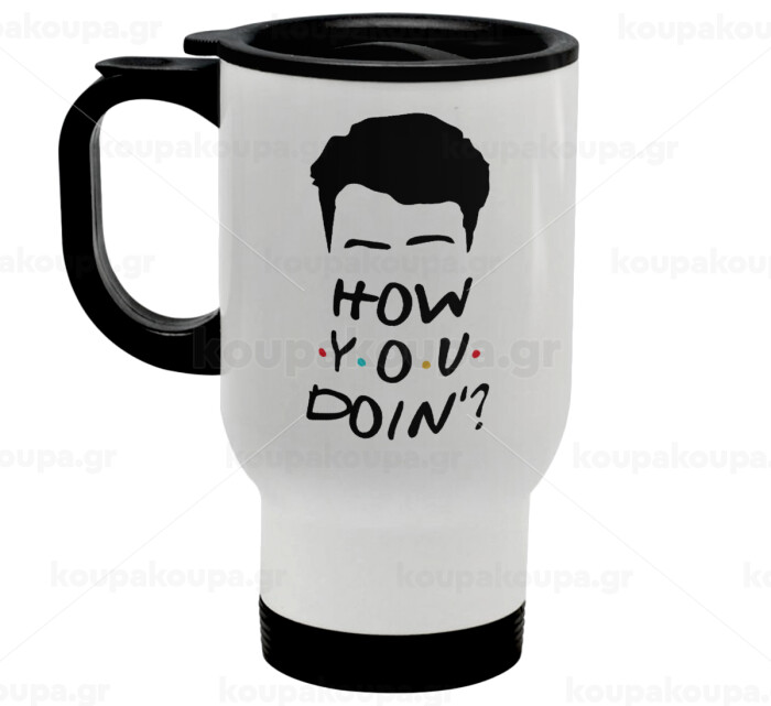 Friends how you doin?, Κούπα ταξιδιού ανοξείδωτη με καπάκι, διπλού τοιχώματος (θερμό) λευκή 450ml