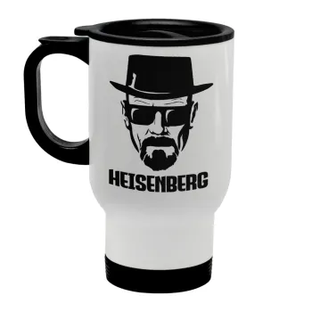 Heisenberg breaking bad, Κούπα ταξιδιού ανοξείδωτη με καπάκι, διπλού τοιχώματος (θερμό) λευκή 450ml