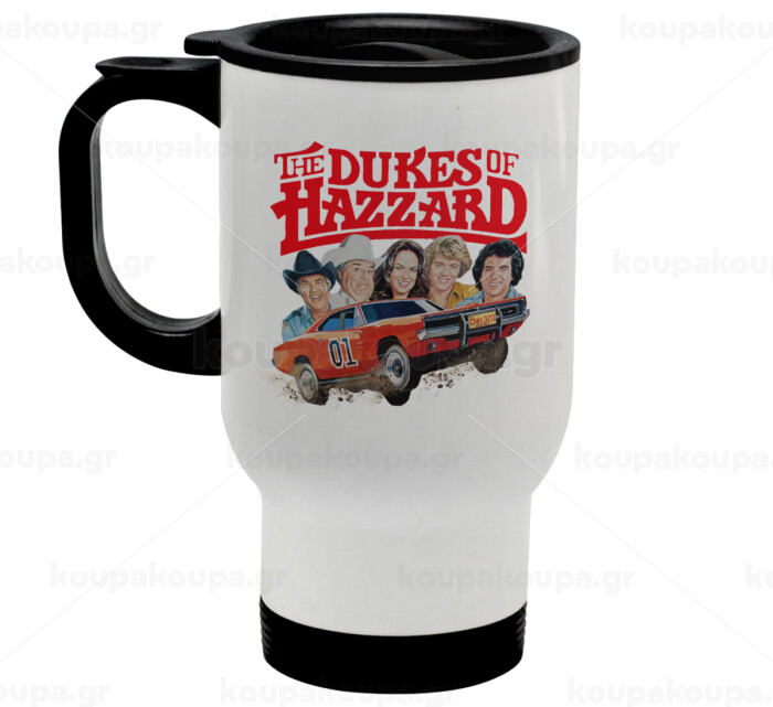 The Dukes of Hazzard, Κούπα ταξιδιού ανοξείδωτη με καπάκι, διπλού τοιχώματος (θερμό) λευκή 450ml