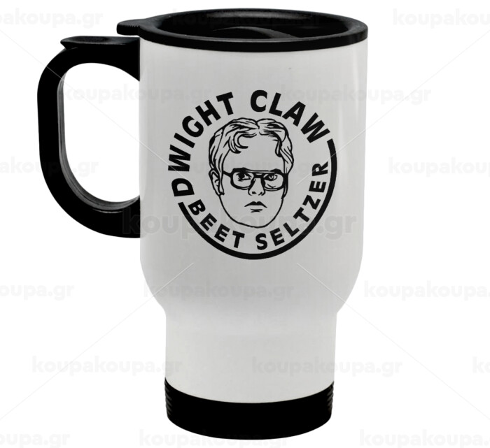 The office Dwight Claw (beet seltzer), Κούπα ταξιδιού ανοξείδωτη με καπάκι, διπλού τοιχώματος (θερμό) λευκή 450ml