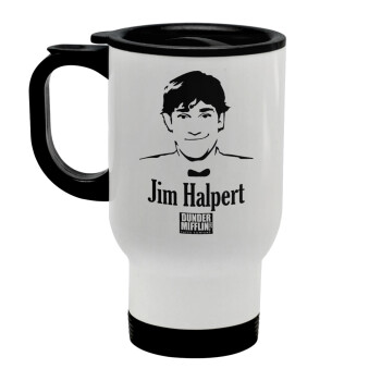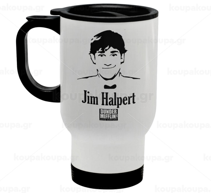 The office Jim Halpert, Κούπα ταξιδιού ανοξείδωτη με καπάκι, διπλού τοιχώματος (θερμό) λευκή 450ml