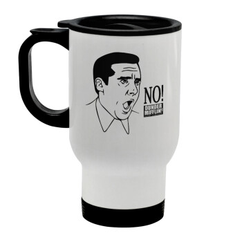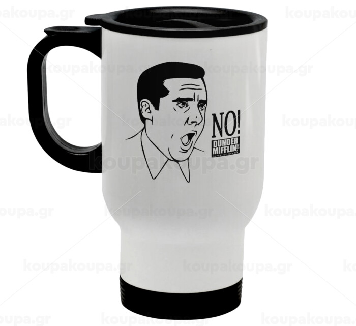 The office Michael NO!!!, Κούπα ταξιδιού ανοξείδωτη με καπάκι, διπλού τοιχώματος (θερμό) λευκή 450ml