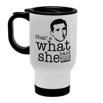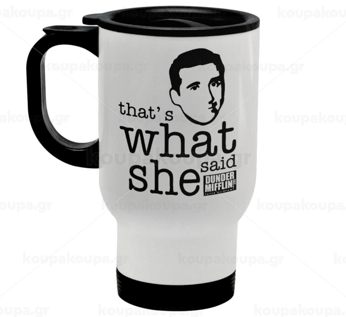 The office Michael That's what she said, Κούπα ταξιδιού ανοξείδωτη με καπάκι, διπλού τοιχώματος (θερμό) λευκή 450ml