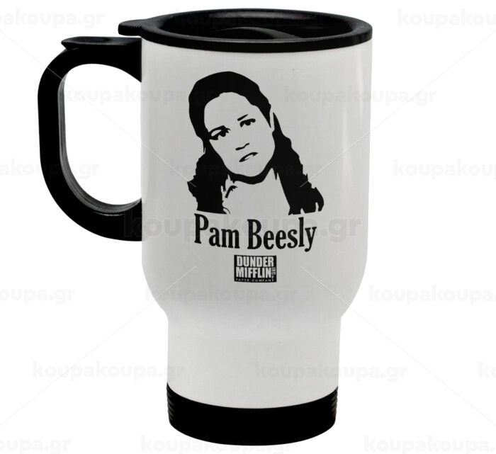 The office Pam Beesly, Κούπα ταξιδιού ανοξείδωτη με καπάκι, διπλού τοιχώματος (θερμό) λευκή 450ml