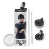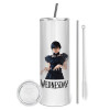 Wednesday Adams, dance with hands, Κούπα ταξιδιού ανοξείδωτη με καπάκι, διπλού τοιχώματος (θερμό) λευκή 450ml