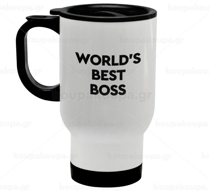 World's best boss, Κούπα ταξιδιού ανοξείδωτη με καπάκι, διπλού τοιχώματος (θερμό) λευκή 450ml