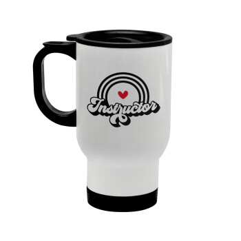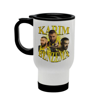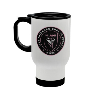 Κούπα ταξιδιού ανοξείδωτη με καπάκι, διπλού τοιχώματος (θερμό) λευκή 450ml με θέμα Αθλητικά
