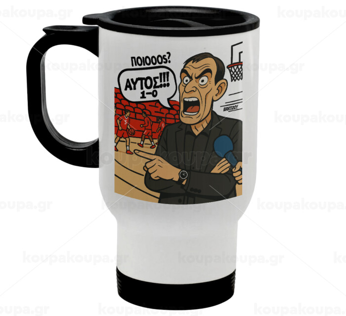 Μπαρτζό, Ποιος? Αυτός!!! 1-0, Κούπα ταξιδιού ανοξείδωτη με καπάκι, διπλού τοιχώματος (θερμό) λευκή 450ml