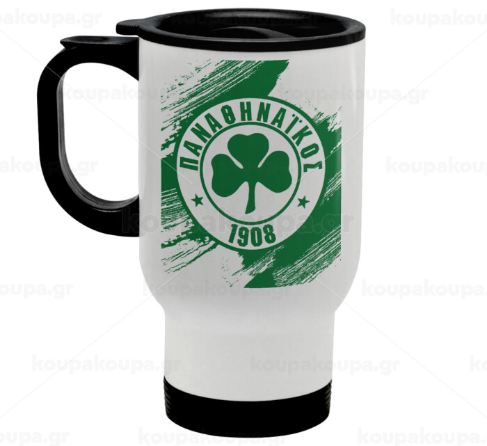 Π.Α.Ο., Κούπα ταξιδιού ανοξείδωτη με καπάκι, διπλού τοιχώματος (θερμό) λευκή 450ml
