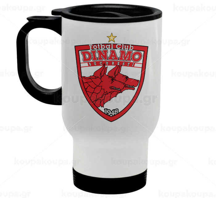 FC Dinamo Bucuresti, Κούπα ταξιδιού ανοξείδωτη με καπάκι, διπλού τοιχώματος (θερμό) λευκή 450ml