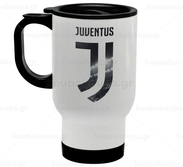 FC Juventus, Κούπα ταξιδιού ανοξείδωτη με καπάκι, διπλού τοιχώματος (θερμό) λευκή 450ml