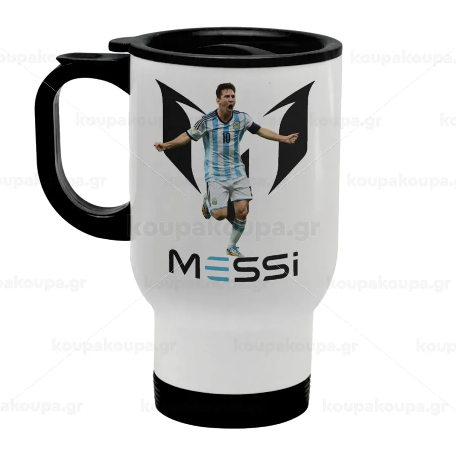 Λιονέλ Μέσι, Leo Messi, Κούπα ταξιδιού ανοξείδωτη με καπάκι, διπλού τοιχώματος (θερμό) λευκή 450ml